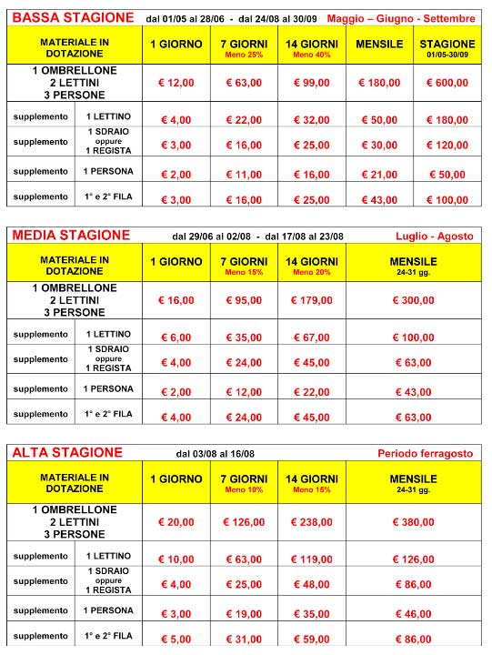10) E' vietato sostare sull'arenile antistante gli ombrelloni con asciugamano ed altro;